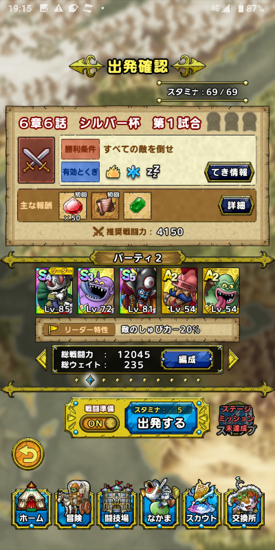 メインストーリー6章熱戦シルバー杯6話シルバー杯第1試合に挑戦しました。